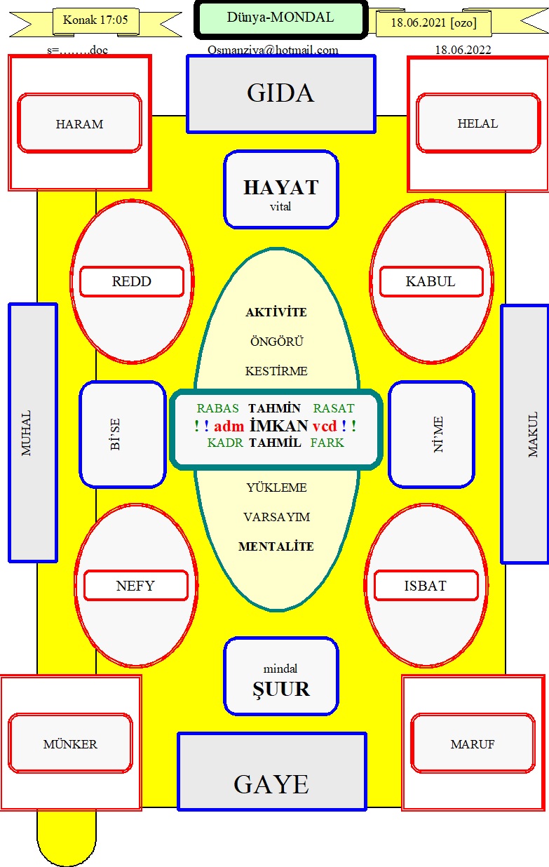 ![]() Geçen seni bu gün 18.06.2022 günü konfigure ettiğim dünyanın resmi.. Onu bu gün biraz daha geliştirerek yeniden resmettim: ![]() Gıdalar ve gayeler arasında yaşadığımız bir RIZIK ve İNFAK hayatının dini bir form almış şekli.. Hayır ve şerlere kabil ve fail bulunarak SAIL olurken.. hasene ve seyyielere kesb ve vehb ile NAİL olurken.. HARAM ve HELAL ile EMİR ve NEHİY'lere muhatab oluruz. İçinde bulunduğumuz HUKUK SİSTEMİ tarafından.. Bu sistem yeşil ve mavi ve kızıl totaliter ve otariter rejimlerde olabilir.. bütüncü ve birlikçi olmakla beraber dayatım ve deneyim arasında denge ve uyum kurmaya izin veren HUKUK DÜZENLERİ de olabilir.. bu da bizim elimizde.. Yani bunu İDEAL sistem ve rejimi önceden kendi AİLE'mizde gerçekleştirebiliriz.. ya da sağlamaya çalışırız. Fakat ne yazık ki içini değiştiremeyenler dışını.. kendini değiştiremeyenler etrafına değiştirmeye çalışabilir ve icabında zorlayabilir ki bu bir zorluk ve sıkıntı çıkarır.. zorla güzellik olmaz.. ancak her güzelinde bir kusur borucu bulunur.. Yani bu iş belli bir nitel ve nicel değişiminin eşiğini gerektirir.. bireysel, toplumsal, ulusal, yerel, küresel çapta.. Fakat bunların hepsinde önce de bizim KENDİ DÜNYAMIZI ortaya koymamız gerekir.. ki bu işte YBA görsel tasarımı ile yaptığı modelleme bize bir kolaylık sağlar. Bilgi, saygı, sevgi ve sağlıcakl kalınız. Mustafa BUĞUÇAM 18.06.2022 Erciş-VAN Düzenleyen osmanziya - 18-Haziran-2022 Saat 13:54 |
