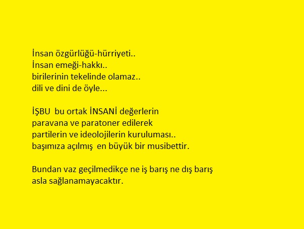 Bir fikir olur.. gününde kimse dinlemez.. on yıldır seslenirsin kimse duymaz.. ne eleştirir ne de netleştirir.. ancak günü gelince herkesin ortak görüşü haline gelir.. fikirler ve itikadlar.. düşünceler ve inançlar öylesine birbirine karışmıştır ki bunları birbirinden ayırmak oldukça zordur. Çünkü insanın korkularından umutularından.. ekonomik çıkarlarına.. politik çıkarlarına.. kadar öylesine birbirine bağlanmış ve yerleşmiştir ki bunları sallamak ve sarsmak olası değil.. bunun bilincinde olarakta bende yıllardır bıkmadan ve usanmadan yerimde yineliyorum.. buraya yazdığım: "İnsan özgürlüğü-hürriyeti.. İnsan emeği-hakkı.. birilerinin tekelinde olamaz.. dili ve dini de öyle... İŞBU bu ortak İNSANİ değerlerin paravana ve paratoner edilerek partilerin ve ideolojilerin kuruluması.. başımıza açılmış en büyük bir musibettir. Bundan vaz geçilmedikçe ne iş barış ne dış barış asla sağlanamayacaktır." Tümcelerinin sadece bir ELEŞTİRİ olduğunu elbette biliyorum.. amma yıkıcı değil.. yapıcı bir eleştiri.. ancak bu YAKINMA ve eleştiri olmadan da sorunun ortaya konulması mümkün değildir.. birileri elbette yakınacak ve eleştirecek ve karalayacak ve suçlayacak ki hatta sorundan yakınma.. bunalımdan bağırma düzeyine çıkacak ki bazıları sorunu duysun, çözümü yüklensin hatta bunalımın belitini.. buhranın bürhanını bulsun.. Sonuçta insanın ortak değerleri yerine proje ve ekip üzerine kurulmuş PARTİLER'de ortaya çıkacak.. bu ortak değerler üzerine kurulu ideolojiler ve oluşumlar ve partiler kalmayacak.. beşeri ütoplar ve distopyalar ile dini cennetler ve cehennemler.. elbette olacak.. biz bunlarsız yapamayız.. ancak bunlar ekonomik ve politik çözümlere ALET edilmeyecek.. Dilin bilime.. dinin hukuka.. intikal etmediğini ancak körler ve sağırlar görmez.. fakat bilimin esası olan iktisadı ve hukukun temeli olan adaleti yerine getiremediğini de hepimiz görüyoruz.. eğer iktisat ve adaletin ölçütleri bilimsel olarak ortaya konulabilseydi.. ki bu günkü koşullarda ve olanaklarda bu yapılabilir.. birey, aile, toplum, ulus, bölge, yerel ve küresel çaplarda bu belli olabilir.. ve tartışılabilir.. ancak belli olmasa bile yarı yarıyanın (yüzde ellinin) altına düştü mü.. hızla daha aşağı iner ve toplumda kargaşa ve anarşi ve huzursuzluk başlar ve çatışmaya dönüşür.. Bu günkü görünüm; ekmek ve eşitlik ideolojileri İKTİDAR oldu mu özgürlük ve kardeşlik ideolojilerinin MUHALEFETE geçtiğini.. özgürlük ve kardeşlik ideolojileri İKTADAR oldu mu eşitlik ve emek ideolojilerinin MUHALEFETE geçtiğini görüyoruz. SİYASETİN motoru böyle çalışıyor.. bu motor böyle çalışmak zorunda mı ? Avamın gereksininmi olan ekmeği.. havassın gereksinimi olan özgürlüğü.. neden onlara sağlamayıyoruz ? Halkın hasedini ve yönetilerinin hırsını neden görmezden geliyor.. buna uygun önlemleri neden almıyoruz ? Sebebi çok açık; dil ve din ile emek ve özgürlük ORTAK İNSANI DEĞERLER'in barışın bulunduğu vasatta gelişebileceğinin ve bununda insanın oluştuğu rasatta gerçekleşebileğinin.. bunun da marifete iltifat edildiğinde ortaya çıkacağının farkında değiliz. Sen artizlere taparsan ya da artizlik yaparsan bunu görebilir misin ? Ben görebilirim.. ben artizlik yaparsamda sen görebilirsin.. Demek sorun hep ben ve sen kalmamda.. biz olamamakta öyle değil mi ? SORGULAMA.. sorma.. kendini eleştirme veya başkasını eleştirme.. soruna değil çözüme odaklanma.. ve böylece sorunu soru haline getirme ve mevcut olanla yetinmeme ile mümkündür.. bu da üçüncü sınıf adamların işidir.. ikinci sınıf adamlar ise bu işten çekinmeyen ve bıkmayan insanlardır.. birinci sınıf insanlar ise zorluğu soruna.. sorunu soruya.. soruyu yanıta.. yanıtı çözüme.. çözüm kolaylığa çeviren insanlardır.. demek sadece yakınan dördüncü sınıfta kalmaya mahkumdur. 11 10 2015 SORGULAMA.. sorma.. kendini eleştirme veya başkasını eleştirme.. soruna değil çözüme odaklanma.. ve böylece sorunu soru haline getirme ve mevcut olanla yetinmeme ile mümkündür.. bu da üçüncü sınıf adamların işidir.. ikinci sınıf adamlar ise bu işten çekinmeyen ve bıkmayan insanlardır.. birinci sınıf insanlar ise zorluğu soruna.. sorunu soruya.. soruyu yanıta.. yanıtı çözüme.. çözüm kolaylığa çeviren insanlardır.. demek sadece yakınan dördüncü sınıfta kalmaya mahkumdur. 11 Ekim 2015.. yani yedi yıl önce bu yazı ile bu fotoyu paylaşmışım.. o da bu günün Metin Güneş ve Ilayda Güneş güneşlerine denk geldi.. OSMANZİYA 11 ekim 2022 Üçyol-İZMİR