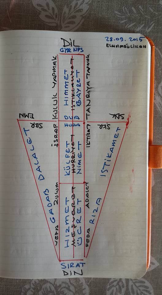 ![]() stiklal.. hürriyet.. meşveret.. üç önemli esas.. istikamet çekirdekleri.. önce karşımızdakinin istiklaliyetini kabul etmek gerekiyor.. ikincisi kendimiz kadar onun da hürriyetini bulunduğunu.. sonra onunla olan ilişkilerimizle karşılıkla konuşarak.. demokrasi ya da meşveret dediğimiz karşılıklı danışarak yürütmek.. bu sağlam ve sağlıklı ilişkinin esasıdır.. karşılıklı sevgi ve saygı esasına dayanan bir hoş görü ile işbirliğimizi ve işbölümümüzü yürütmek.. bu KOLAY bir iş değildir söylendiği gibi.. ancak tablonun özelliği bu ilişkinin altın esaslar olan.. şükür ve sabır.. sıdk.. emn.. iktisat ve adalet.. vefa ve feda bağlantılarını kurmasıdır.. |