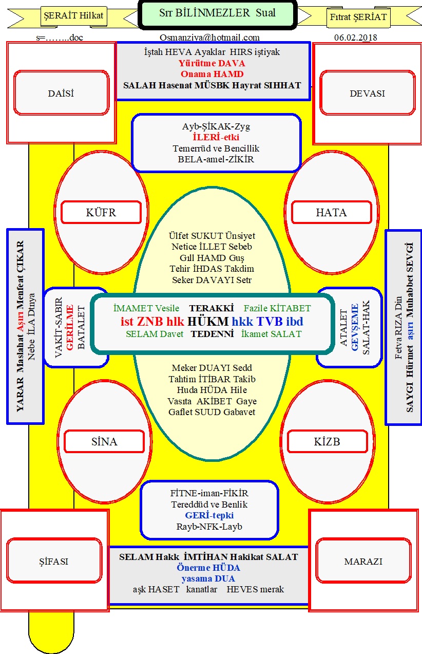 Sanırım heva-yı nefsimizden.. nedir nefsin hevası ? HEVA-YI NEFS olarak geçer.. bedenle ilgilendirilir.. ten ile alakalıdır.. nefsin istekleri helal ve haram tanımaz.. hudud bilmez.. öylesine dinamik ve oynaktır en HIZLI latifemiz olarak tanımlar Rahmeli Onk. Dr. Haluk NURBAKİ.. Ruhun dilekleri varsa nefsinde istekleri vardır. Genelde nefsin istekleri sol.. ruhun dilekleri sağ.. olarak tanımlanır. Doğrudur. Ancak İSTİKAMET.. denge.. uyum.. ılım.. orta yol ve kısa gidiş bu ikisinin birlikteliği iledir. Nefis AKIL ile çalışır.. Ruh kalb ile işletilir.. Nefsin arzuları ve istekleri Aklın düşüncesi ile birlikte iş görür.. Ruhun dilekleri ve talepleri Kalbin duygusu ile beraber ortaya çıkarlar.. diye örüyor, kuruyor ve görüyorum Ancak benim burada muradım günde kırk kez beş vakit namazla Yaradan'dan istediğimiz "ihdi-nâ-es-sırat-el-müstakim" duasındaki İSTİKAMET üzerinde durmak. İstikamet üzerinde olup olmadığını Allah bilir.. lakin en çok sözünü ettiğim terim ve kavram.. en çok kullandığımı ad ve anlam.. istikamettir. Bir ara istikamet ileri gitmektir.. geri gitmemektir diye tutturduk gitti.. ve halende öyledir.. lakin ileri etki ve geri tepki oyununda AŞIRI ileri gitmek.. AŞIRI geri gitmek.. dikkatimi çekti.. çünkü insan sürekli ileri gidemez.. eksik ve yetersiz insanın bir sürü yalan ve yanlışlarının bulunması doğaldır.. bu nedenle güzellik ve iyilik davasında geriye gidebilir.. yetkinlik ve yararlılık noktasında yan çizebilir.. işte bu geriye gidiş normalda sürekli geriye gitmek yanlıştır.. aşırı geriye gitmek hatalıdır.. çünkü kendini bi bo sanabilir. Her ne ise.. biz burada düz yazı ile hocalık.. açık ve seçik anlaşılır yazı ile yazarlık yapacak değiliz.. bu iletinin ekinde ortalardan bir tablo yapıştıracağım ve sıkıştırılmış rar dosyası içinde dört hablo içinde 40 tane TABLO ile sizi yüzlerce KABLO ile baş başa bırakacağım.. kendiniz istikameti görecek ve öreceksiniz.. umarım. işte hablolar; 20180207_083545_ISTIKAMET.rar ve işte ortadan seçtiğim tablonun bir tanesi;