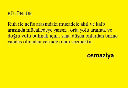 ![]() BÜTÜNLÜK Ruh ile nefis arasındaki mücadele akıl ve kalb arasında mücahedeye yansır.. orta yolu aramak ve doğru yolu bulmak için.. sana düşen onlardan birine yandaş olmadan yerinde olanı seçmektir. Bu durum Hegel tarafından tez-anti-sentez adımlarıyla formüle edilmiş olup gelenek ve yenilik adımlarıyla tarihin adımları olarak bilinir. Bu yol daha öncede dinler tarafından dünya-cehennem-cennet olarak öykülendirilmiştir. Peygamberimiz tarafından da hem hiç ölmeyecekmiş gibi dünyaya çalışın hem yarın ölecekmiş gibi ahirete çalışın öğütüyle dillendirilmiştir. Böylece iki tarafı da kazanabiliyoruz. Ne yazık kı biz tersini yapıyoruz: Yarın ölecekmiş gibi dünyaya çalışmıyoruz ya da hiç ölmeyecekmiş gibi ahirete çalışmıyoruz. İki tarafıda kaybediyoruz. desem ne kadar doğru ? Nefs ve aklin birlikte oluşturdugu SOL GÖRU.. ruh ve kalbin birlikteliginden çıkan SAĞ DUYU.. her iki bir butun. Nörloji bunu beynin sol ve sağ lobları olarak saptadı. Solda lineer ve matematiksel düşücenin Sağda ise san’atsal ve global düşüncenin yer aldığını söylerler Sol görü ve sağ duyunu bütünlüğü bozulursa bazılarında birisi bazılarında digeri ağırlik kazaniyor ve böylece sol GORUŞ ve sag DUYUŞ ortaya çıkıyor.. diye düşünuyorum. Ancak belki de bu ayrilik bilim ve hukuk alanları için ayri bir uzmanlik oluşturuyor. Bu ayrı bir konu... Şu da var k sol görüşün aklının.. sağ duyunun kalbinin.. aşırı ve abartılı kullanılmasıyla bunlar bağdaştırılmıyor. Böylece ortaya.. cılkı çıkmiş sol gorüş olan SOLCULUK.. culk olmuş sağ goruş olan SAGCILIK.. çıkıyor.. diye örüyorum. İletişim ve etkileşim ile bilişim ve bildirişim.. Her iş önce İLETİŞİM ile başlar.. insanlar kendi içlerinde İKİNCİLİ BİLGİLER olan işaretler (göstergeler) ve delaleletler (görüngüler) ile dolu bir dünyaya aşıp BİRİNCİL BİLGİLER olan nazarın manzarasına ve başarın mubsırasına erişimeleri zordur. Zaten baktığımız her nesne ve kimse için ön bilgiler.. ön yargılar ve ön deyiler oluştururuz.. sonra onlarla ilgilendikçe tanıdıkça, gördükçe, bildikçe bunları değiştirir ve geliştirir ve iyileştiririz. Bundan sonrada diğer etkileşimler, bilişimler ve bildirişimler başlar. Sonuçta SOL’un vücudu ve SAĞ’ın vicdan birlikte çalışmaya başlar. Osmanziya 25.02.2021 Üçyol-İZMİR Düzenleyen osmanziya - 25-Şubat-2021 Saat 17:08 |