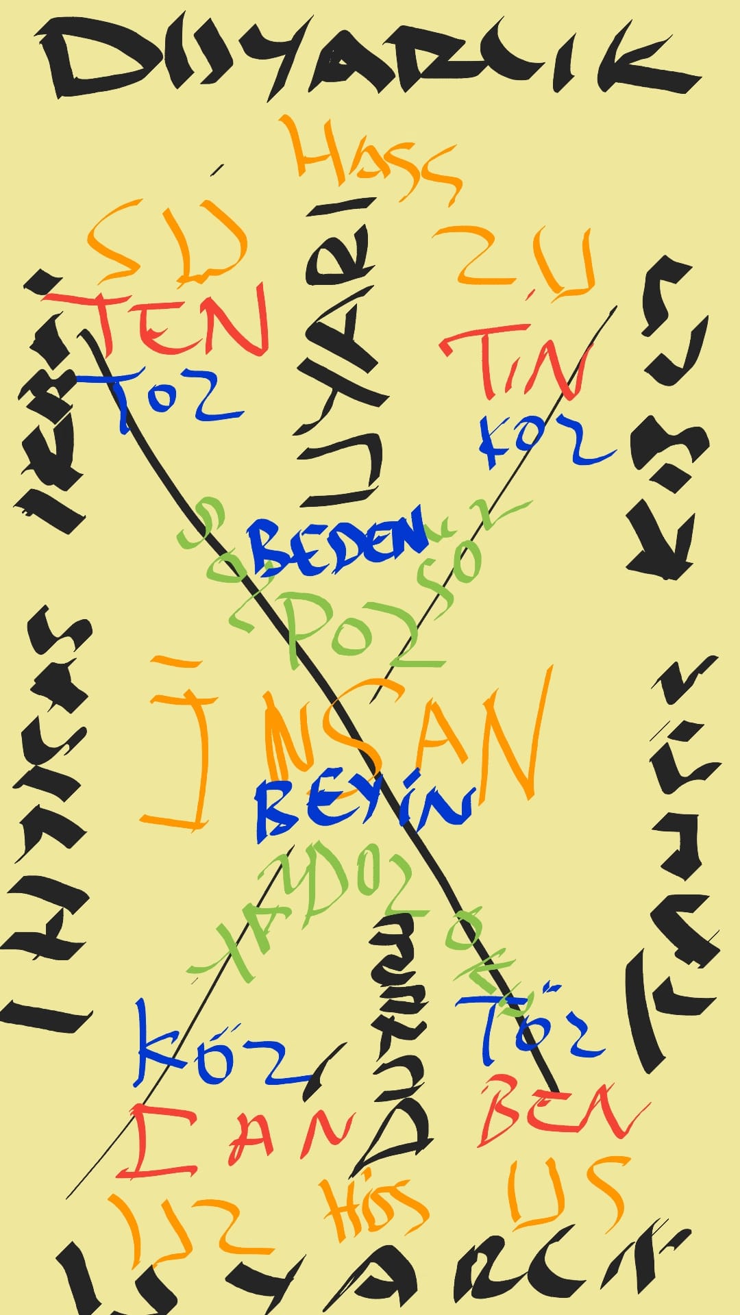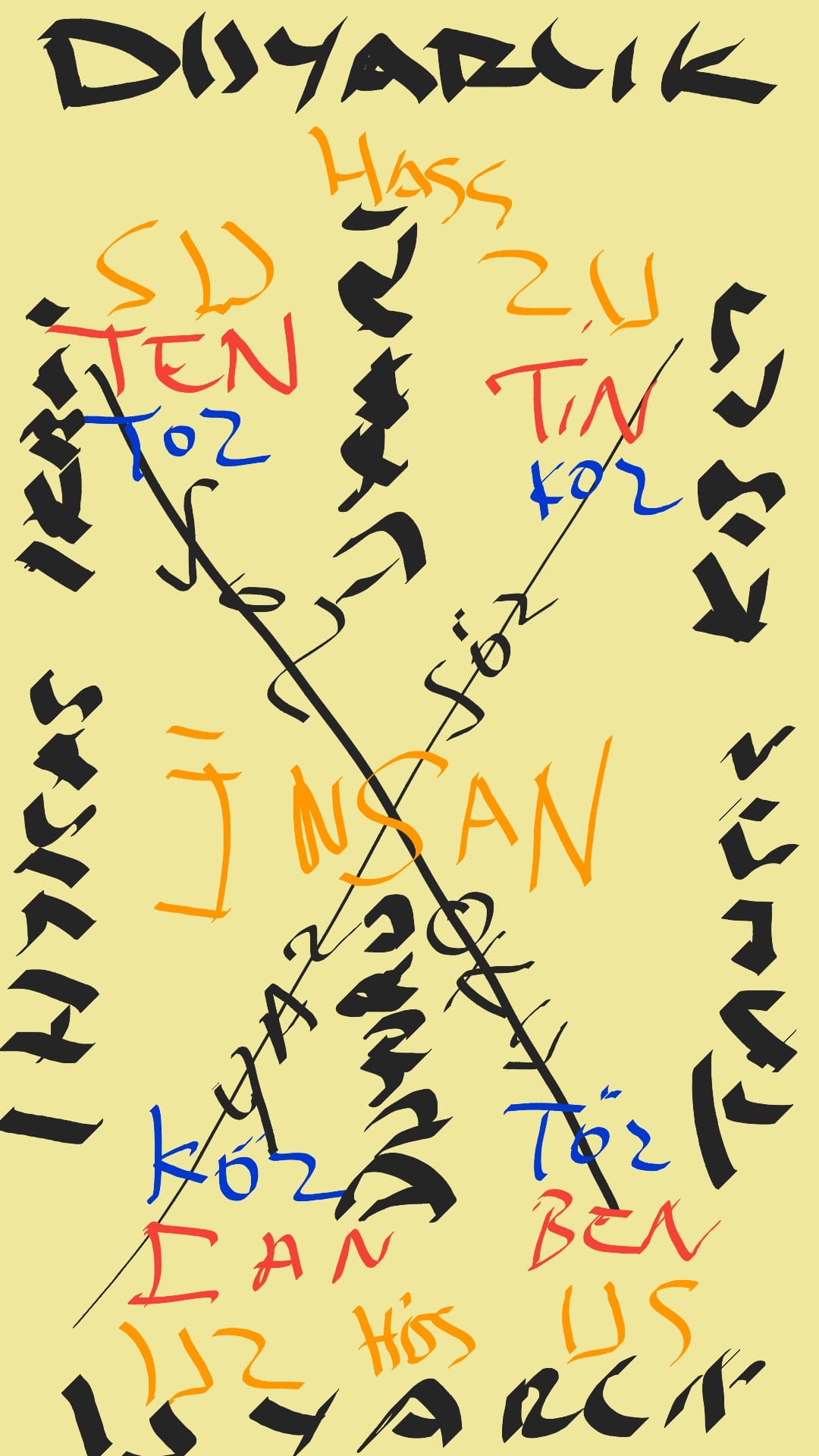 Tablo bulunan AKS'ı yani X 'i açıklamaya çalıştık. X işareti; düz yani sol / slaş ve ters yani düz slaş işaretinin toplamıdır. Soz (KALEM) ve (KİTABET) yaz ile oku (KIRAAT) ve (KELAM) Söz üstünde kuruludur. Bu X işaretinin üstüne POZ altında DOZ adını verdik.