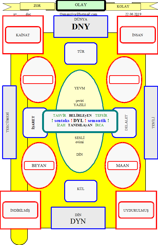 ancak konuyu şimdi hatırlıyorum.. din olayını giren herkes bilir ki YORUMLANMADAN.. yani yorulmadan din elde edilmez.. edilirse ana ve babadan.. çevreden ve toplumdan edinilen din olur.. yorulsak ve yorumlasak bile yine elde ettiğimiz din BİZİM (benim) dinim olur.. sonuçta ortak bir din ideali.. Şu da var ki ortak bir dil ideali varsa olası olur.. ancak çoğumuz din haline getirilmiş felsefeler (ideolojiler) ve felsefe haline getirilmiş dinler (miteolojiler) yüzünden.. henüz ortak bir arayışına girilmemiştir.. çünkü acil ekonomik ve politik çıkarlar vardır ve uzun vadeli kültürel hedefler, projeler yavaş yavaş gereksinim duyulurlar ve ortaya çıkarlar. Buna rağmen biz bu günden konuya el attık.. ve dediğim gibi zamanı gelmediğinden de gündeme girmedi.. İNDİRİLMİŞ VE UYDURULMUŞ DİN DIN dizini içindeeki dosyalar 20190622_134917_DIN.rar Din deyince artık bazı insanlar ikiye ayrıldı.. bazıları indirilmiş dine uyduklarını ve kendilerine uymayanların ise uydurulmuş dine uyduklarını söylüyorlar.. aslında bu “indirilmiş” yerine “uyulmuş” din deseler.. “uydurulmuş” suçlamalarına daha bir nesnellik kazandırabilirler.. biz dine uyuyoruz.. siz dine uymuyorsunuz uyduruyorsunuz demeye getirebilirler.. lakin bu sav bile kanıt ister.. ya suçladıkları değil de kendilerini “uyduruyorlar” ise.. zaten uyma yani İTAAT ve İTTİBA karmaşık bir konudur.. kolay kolay da çözülmez.. lakin YBA ile bir derece tefrik etmeye çalıştık. Bu konu Ali İmran suresinin 31/34 ayetlerin açıklığa kavuşturulmuş. Ancak biz bu konuya doğrudan girmeyeceğiz dolaylı olarak dünya, dil ve din ayırımına açıklık kazandırarak konuyu çözmeye çalışacağız. Hadise olur.. sonra bu olay bazen haber olur.. ancak haberi dirayetle hakikati hikaye edilir.. sonra bu haberin hikaye edilen hakikati rivayet edilir… Hadisenin olduğu yer DÜNYA’dır.. siz buna doğa (tabiat) dersiniz.. döne (tarih derim).. doğa ve döneyi birleştiren evren (kainat) diyelim en iyisi.. ancak evren doğa halinde iken evrendir, varlıktır, mekandır, yapıdır.. fakat işin içine zaman olayı girince işlev haline gelir.. bakın DÜNYA ne kadar karışık ve karmaşık.. İşte dünyadaki olayı bir anlam ve anlatım haline getirene kadar devreye giren başka bir olayı görüyoruz.. bu da DİL’dir.. belki dil, dünyadan daha karmaşıktır ya da dünya dilden daha karmaşıktır.. ancak konumuz bu değil ve durum şöyle özetleyebiliriz; dil dünyayı belirliyor.. dirayet, hakikat, hikaye, rivayet, işaretlerin tercümesi.. delaletlerin tevili.. barizlarin tasrihi.. beyyinleri teşrihi derken daha dünya gibi kökeneni inemediğimiz SENTAKS ve SEMANTİĞİ ile bir dil var.. her ne kadar koşullandığımız, kurallandığımız, öğrendiğimiz, çalıştığımız ve alıştığımız ANA DİLİMİZ bize kolay bir olay görünse de yalın görüntüsü ve görüngüsü ve göstergesi altında kafa karıştırıcı bir dilimiz ve bunun belirdiği dünyamız var. Dil ve dünyadan sonra bir de DİN’den bahsetmiştik.. altı bin yıllık YAZILI dil ve din birlikteliği ile ortaya çıkan KÜLTÜR’ümüz bize nerede İNSAN varsa oradan dil ve din bileşenleriyle birlikte bir KÜLTÜR ortaya çıktığını ve bunun bir DÜNYA inşa ettiğimi gösteriyor.. Genel dünyadan kopyalanarak ortaya çıkan kimseler sayısınca ÖZEL DÜNYA’ları nazara alırsak.. din olayının öyle kabaca indirilen din ve uydurulan diye kolayca ayrılmayacağını gösteriyor. Ancak buna rağmen biz bu dizine ekli tablolarla ki otuz tane DİN diziminde 7 tane ESRARISERİAT dizinin kırka yakın tablo ile bu olay nisbeten kolay bir şekilde anlamaya ve anlatmaya çalıştık.. Her işte olduğu gibi bu tabloları anlamakta (USR) ZOR ---- OL (hudus)AY ----KOLAY (YSR) Üçlemesinden oluşuyor. Kolaylık istiyorsanız tabloları versiyon sırasıyla yalından karmaşığa doğru izlemeli.. imgelemeli.. irdelemeli ve incelemelisiniz . Kolay gelsin. OSMANZİYA 22.06.2019 Üçyol Bilgi, sevgi,saygı ve sağlıcakla kalınız. ![]() Düzenleyen osmanziya - 22-Haziran-2019 Saat 14:14 |