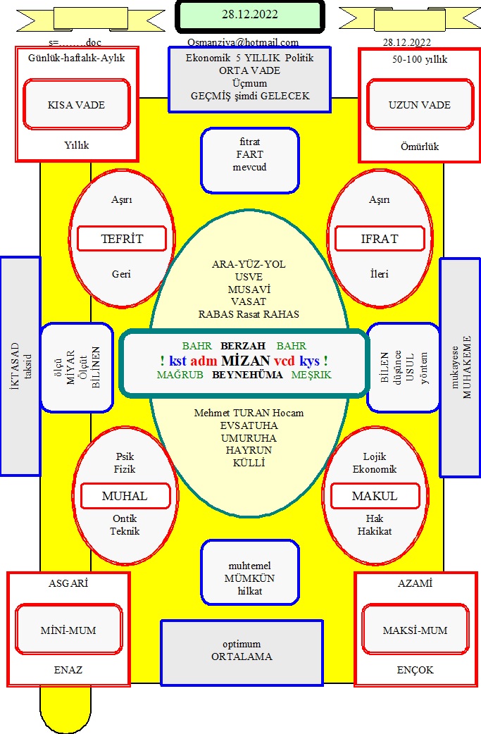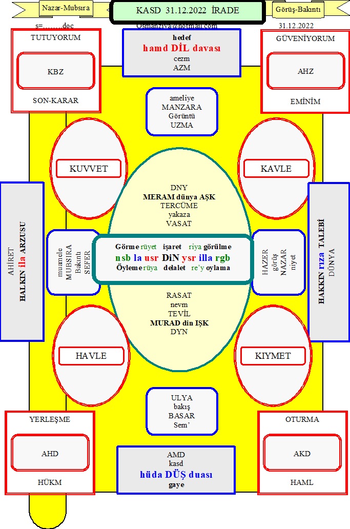 ![]() KOZ Zihnimizin Izgaraları.. Akıl Hapishanemiz.. Şuurun Köşetaşları.. Analitik Düzlem.. YBA Mutfağı . KOZ dizini içindeki dosyalar KOZALİTE poz doz koz toz koz köz töz roz uz US oz zzzz osman zzzzz KOZ KOZ dizini içindeki alt dizinlerde yine KOZ başlıklı dizinlerde 50 ye yakın tablo bulunuyor.. keza yine LMS dizini içinde LAMISE ve LEMS dizinleri içinde 34 tane dosya bulunuyor. Ve ayrıca bir resim ve iki düz yazı yer alıyor. KOZ dizini içindeki tabloların ilk üç dört tanesini hanımla başlattık.. konu Zeki Hocama verdiğim bir yanıtta KOZ demiştim tinin (ruhun) beslendiği “toz”lara.. zaten tenin ve bedenin su ve hava ile bitki ve hayvanların tozları ve atomları ve hücreleri beslendiğini zaten biliyoruz.. ancak bu bilişin bilimsel olması için altmış bin yıl sesli altı bin yıl yazılı dil ve dinin kültür birlikteliğinin geçmesi gerekti.. ve bu gün dahi mahiyetini hala anlamış değiliz.. bu tozların enerjilerinin nereden geldiğini bilmiyoruz.. Ancak Yaratan, besleyen ve eğitin ve yöneten SALT Tanrı’yı imanımız bizim bu işimizi kolaylaştırıyor. Fakat bu kolaylık konuyu araştırmamıza ve derinleştirmemize engel değildir. Ben de insanı tanımada kendime engel görmedim burada sözünü ettiğim TABLO’larda insan arayışımı sürdürdüm. Burada tabloları versiyon sırasıyla.. yalından karmaşığa doğru.. vakti olup alakası bulunup inceleyen bir aydının anlatımı anlamaması mümkün değil desem onları suçlamış olacağım.. mümkündür desem kendime sayı göstermiş olacağım. Fakat insanları ilgi duymadığı için suçlayamadığım gibi eğer kadere ve yazgıya bir inancım bulunuyorsa daha bu işin zamanının gelmediğini unutmamam gerekiyor. Çünkü YBA edinilmesi gereken bir dil.. bir dil edinilmeyince elbette onun sesleri gürültüden ve harfleri de görüntüden ibaret kalacağı belli.. Bu nedenle insanlar YBA ile öğrenmeleri, kullanmaları ve yararlanmaları da gerçekleşmiyor ve bizler hepimiz YARARI olmayan bir şeyi de edinmeyiz ve öğrenmeyiz ve kullanmayız. Bu yazı özellikle ZEKİ ÇOŞKUN hocam ile yazıldığı için.. ona burada birkaç konuyu anlatmam gerekiyor. Bir defa kendisine çalışmalarından dolayı HAYRAN’ım.. çalışmaları da BİLİMSEL yapısı nedeniyle gelecekte insanların ufkunu açacak biçimler ve içerikleri kapsıyor.. buna çalışmalarını tek tek derinlemesine incelediğimden değil.. yüzeysel bakışımda dahi belli oluyorlar. İnceleme işini yapamamış olmanın nedeni de kendisinin özel bir inşa etmiş olmasıdır.. yani YBA gibi onunda önceden edinilmesi gerekiyor ki zorlanmadan öğrenelim, kolaylıkla kullanalım ve pek çokta yararlanalım ve istifade edelim. Yani benim onun dilini ve onunda benim dilimi.. bu saatten sonra edinmesi ve kullanılması zor görünüyor. Ancak ben yine de benim dilimi edinmesi ve öğrenmesi için değil tanıması ve anlaması için bir örnek olarak bu çalışmayı yaptım. Burda KOZ’ın ne anlama geldiğini açmaya, örmeye ve görmeye ve göstermeye çalıştım. Ben bile bu çalışma ile de KOZ’un tam çıkartamadım.. ancak KOZALİTE adı verilen bir YASALAMA tekniği bulunur. Bilim adamları ortamlardaki koşulları matematiksel bir ifade ile tanımlamaya çalışırlar. KURAM daki varsayım ve öngörü TEZ’leri .. UYGULAMA daki ölçüm ve sayım TEST’leri ile.. işte bu sebeb-sonuç.. neden-netice.. sebeb-netice sürecine KANUN (yasa) adını verirler. Başka ilim adamları da bu NEDENSELLİĞİ (illeti) kendileri test ederek bu tanımı doğrularlar. Örneğin su bileşiminin katı ve sıvı ve gaz adı verdiğimiz bilinen FAZLARI’nı diğer elementler ve bileşiklerde de ortaya çıkararak bu maddenin plazma.. gaz.. sıvı.. katı.. durumlarında ISI ilişkini TERMO-DİNAMİK (ısı-hareket) yasalarla ortaya koyarlar.. bundan da FİZİK ve KOZMOLOJİ (evrenbilim) ilimlerini çıkarırlar. Aynı şekilde canlı ve cansız maddelerde bu kozalite (termodinamik) yasalar bulunduğu gibi zihin ve şuur ve akıl süreçlerinde de SEMİO-SİBERNETİK (işitme-yaşama) yasaları bulunur ki eğer bunlara YASAKLAR denilerek onların YASA’lardan ayrılması kolay olur. Ancak bu yasalar ve yasaklar İNSANLAR tarafından tanımlanmıştır. Yoksa doğrudan EVREN ve İNSAN da ortay çıkmaz.. uygarlık tarihi boyunca bu yasalar ve yasaklar değiştirilmeye ve geliştirilmeye çalışılacağından kuşkumuz bulunmuyor.. eger uygarlığımızın ömrü vefa ederse. Kozumuzun, pozumuzun ve tozumuzun ortaya bir ROZ çıkarması ümidiyle anlaşılmaz sözlerimi bitiriyorum. Anlayan anlamayana anlatsın demeyeceğim.. çünkü YBA insanın kendinin anlaması ve anlatmasına ilişkin bir dildir. Belki ileride YBA öğrenicilerden birisi ÖĞRETİCİ hale gelcek bu dilin edinilmesini sağlayacak. Saygılarımla.. sağlıcakla kalınız. Osmanziya 18.11.2022 Cuma İZMİR Sağlıcakla kalın OSMANZİYA Sentaks / sözdizimsel / BEYANÎ eksikliklerim VE semantik / anlambilimsel / MAANÎ yetersizliklerim için düz yazıdan özür dilerim . NOT: Evet, aslında benim kullandığım sistemde cümleye, kelimeye hatta harfe de ihtiyaç yok… |