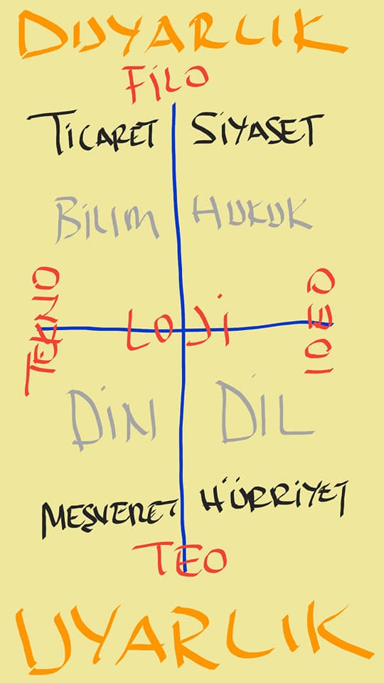 Bu ANLATIMLA dünyayı belirleyen ve dini tanımlayan DİL merkeze alınmış oluyor..Siz başka bir snlatimla dini ya da dunysyi merkeze alan bir ANLAM verebilirsiniz.